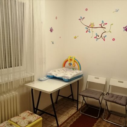 A lakás felújított, új berendezési tárgyakkal és tornaszerekkel ellátott. Külön VÁRAKOZÓ HELYISÉG biztosított pelenkázóval és játékokkal, illetve mellékhelyiséggel.