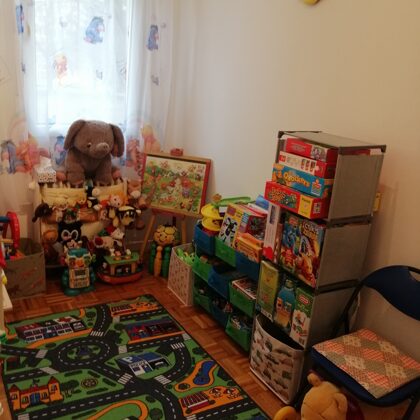 Természetesen olyan család is jöhet a Játszóházba, aki nem jár tornára, csak egy kis kimozdulásra, együttjátszásra vágyik a gyerkőcökkel. A Játszószoba külön helyezkedik el a Tornateremtől, ahol ezzel párhuzamosan a terápia zajlik a terapeutával.